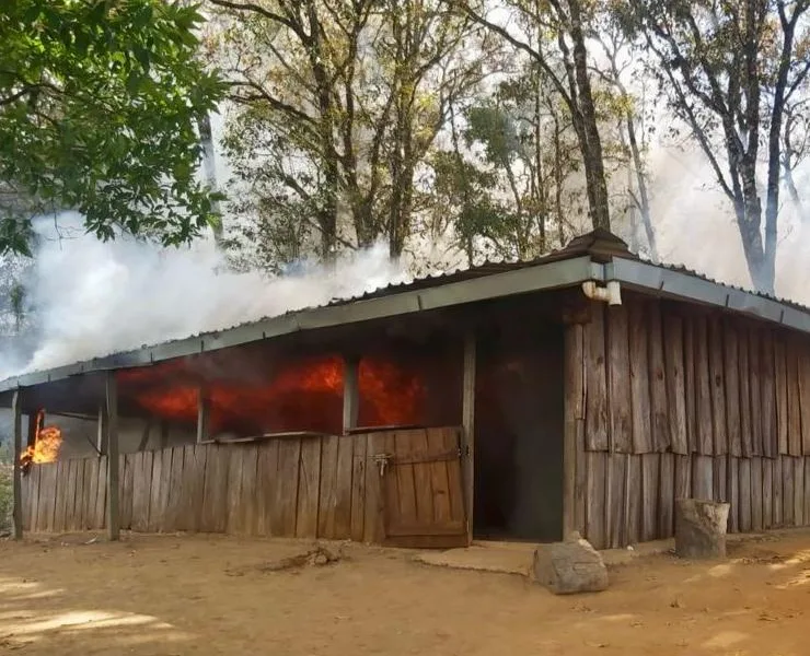Zitácuaro, Michoacán, 9 de febrero de 2024. Una cabaña de dos pisos ubicada en la tercera manzana de Nicolás Romero, en el municipio de Zitácuaro, fue...