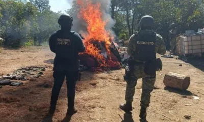 En la población de Acahuato, los agentes estatales y federales aseguraron equipo táctico y uniformes.