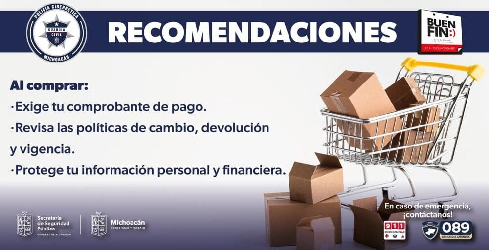 Morelia, Michoacán, 16 de noviembre del 2023.- En el marco del evento comercial nacional denominado “Buen Fin”, en su edición 2023, la Policía Cibernética de la...