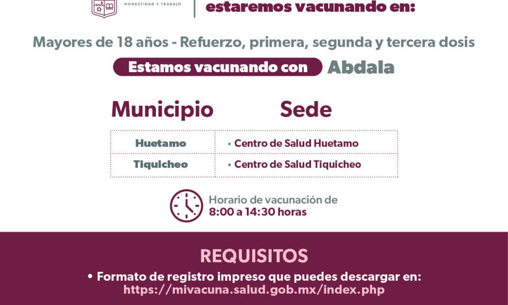 Vacunará SSM contra el COVID-19 en 62 municipios de Michoacán Para mayores de 18 años, con el biológico Abdala