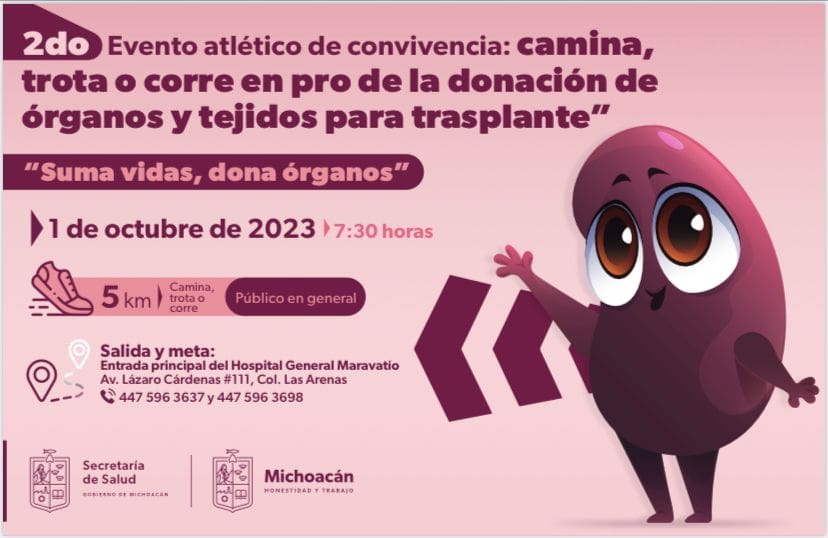Realizará SSM carrera para promover la donación de órganos El evento deportivo será en Maravatío el 1 de octubre