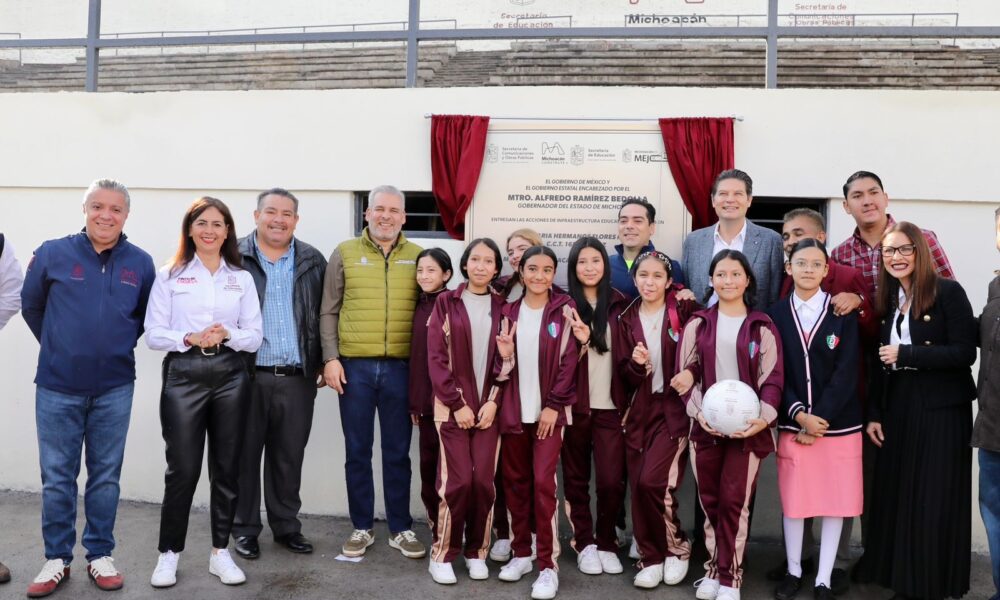 Morelia, Michoacán a 10 de diciembre de 2025. El gobernador Alfredo Ramírez Bedolla inauguró dos canchas de fútbol 7 en la Escuela Secundaria Federal No. 2...