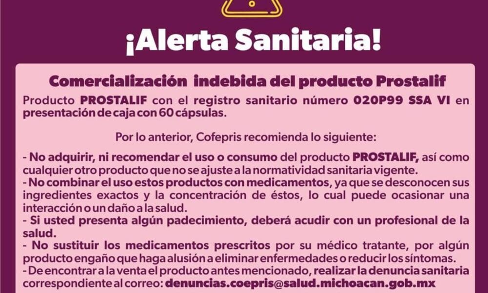 SSM alerta sobre comercialización indebida de Prostalif El producto no cuenta con permiso sanitario para su fabricación.