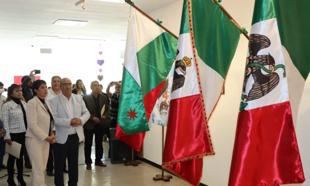 Instala SEE exposición de banderas y símbolos patrios En la Biblioteca “Francisco J. Múgica” se muestran los cambios a través de los años.