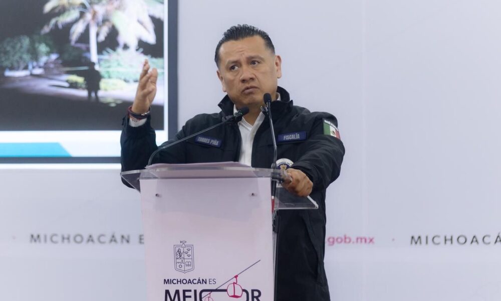 Morelia, Michoacán a 12 de diciembre de 2025. El fiscal general del Estado de Michoacán, Carlos Torres Piña, informó sobre la detención de Luis Felipe N.,...