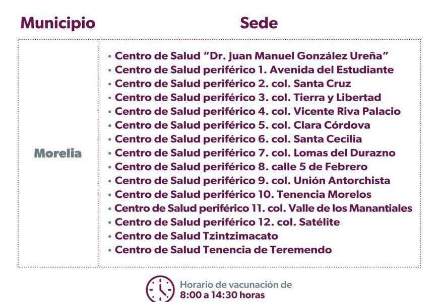 Continúa vacunación contra COVID-19 en centros de salud de Morelia Son 15 unidades las que inmunizan a niños de 5 a 11 años.