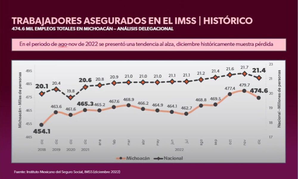 Cierra Michoacán 2022 con registro histórico de empleo formal, por arriba de 470 mil asegurados