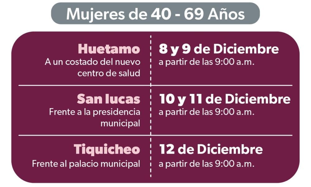Invita SSM a jornadas de mastografía gratuita en Huetamo, San Lucas y Tiquicheo