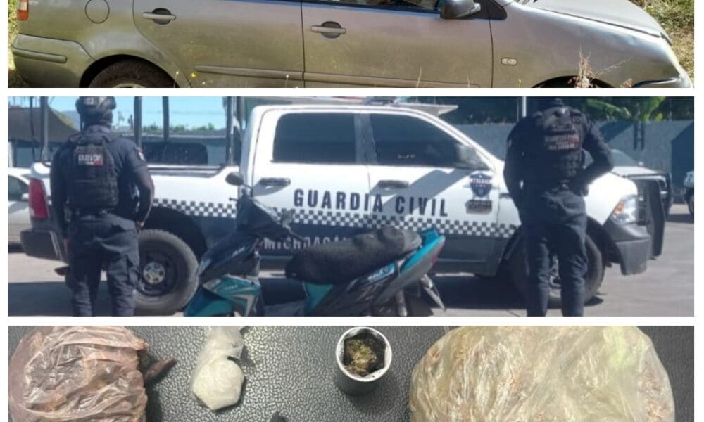 En Jacona, Uruapan e Hidalgo, GC asegura tres vehículos y detiene a dos personas en posesión de drogas