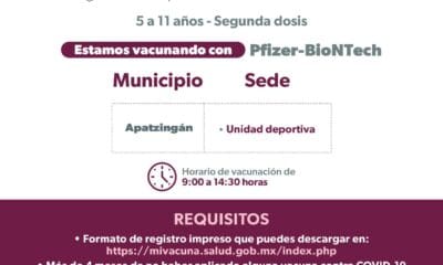 Aplicarán segundas dosis de Pfizer a niños de 5 a 11 años en Apatzingán