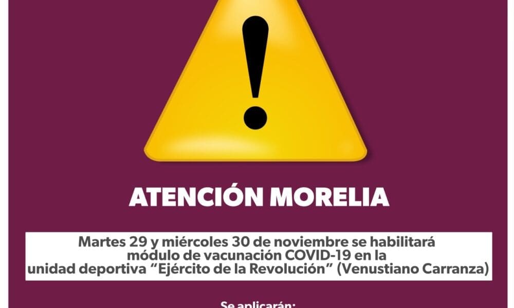 Abre SSM en Morelia macromódulo de vacunación contra el COVID-19 en el Venustiano Del 29 al 30 de noviembre se aplicará el refuerzo adicional y la...