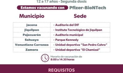 Hoy arrancó vacunación anti COVID-19 para población de 12 a 17 años • Se estarán aplicando primeras, segundas dosis y refuerzos en 46 municipios y localidades