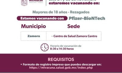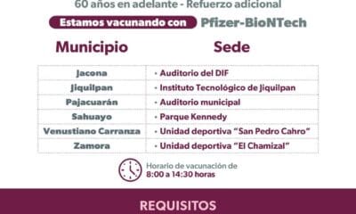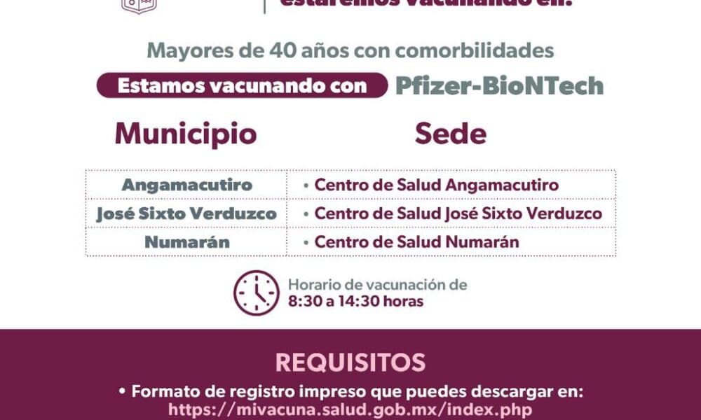 Inicia en Michoacán aplicación de refuerzo adicional de vacuna anti COVID-19, para mayores de 60 años