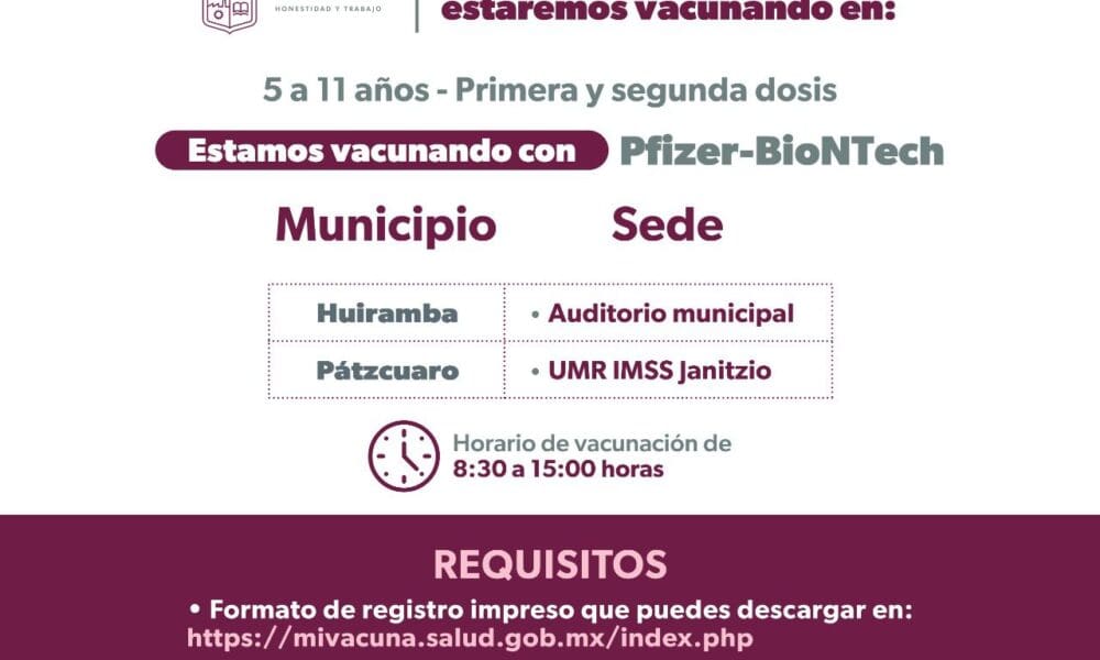 En octubre continuará vacunación contra COVID-19 para niños de 5 a 11 años Los infantes del interior del estado serán los inmunizados con segundas dosis de...