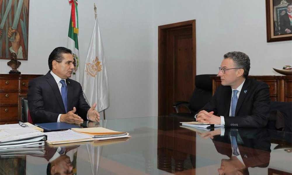 Morelia, Michoacán, a 13 de noviembre de 2018.- El Gobernador Constitucional Silvano Aureoles Conejo, sostuvo una reunión de trabajo con Antonino de Leo, representante de la Oficina...