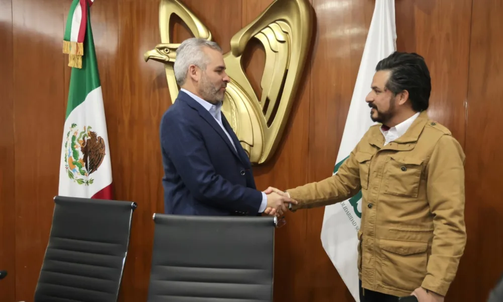 Ciudad de México, 2 de abril de 2024.- El gobernador Alfredo Ramírez Bedolla y el director general del Instituto Mexicano del Seguro Social (IMSS), Zoé Robledo...