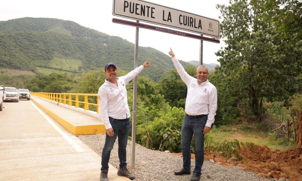 Aquila, Michoacán, 13 de septiembre de 2023.- Tras siete años de suspenderse la construcción del puente “La Cuirla”, del tramo Pomaro-Cuirla, del municipio de Aquila, por...