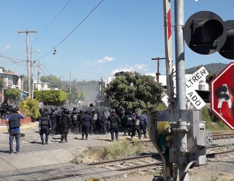 • Supuestos maestros agredieron a los uniformados al tratar de apoderarse de la red ferroviaria en Caltzontzin. Hay 8 policías y al menos 2 guardias nacionales...