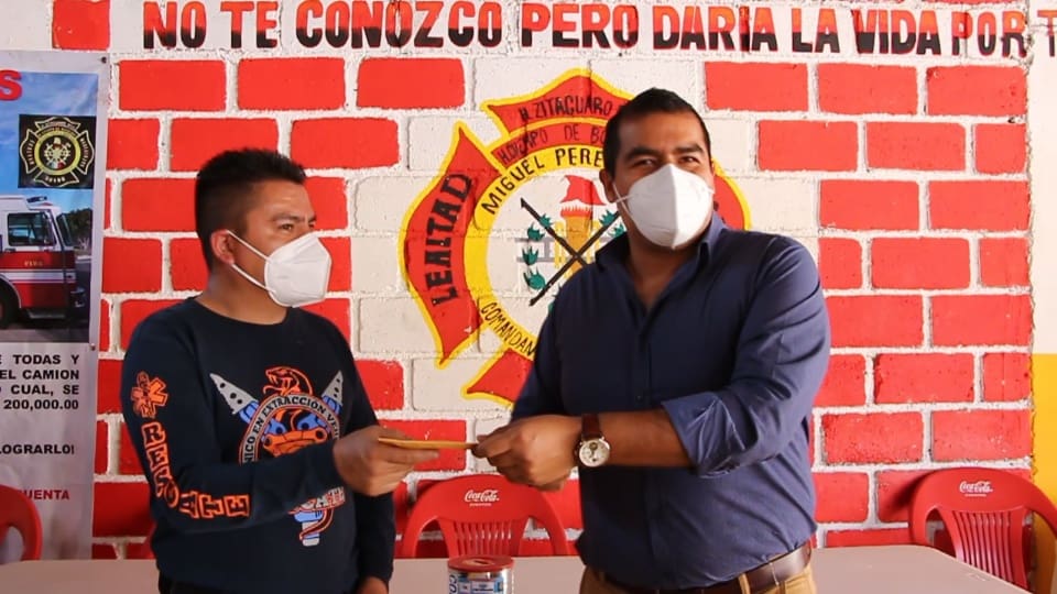 Entrega alcalde apoyo a Bomberos, para el traslado del camión motobomba a Zitácuaro