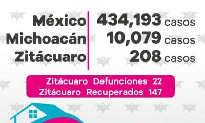 ¤ Michoacán reportó este día 8 muertes por COVID-19 y 185 casos nuevos en las últimas 24 Horas.