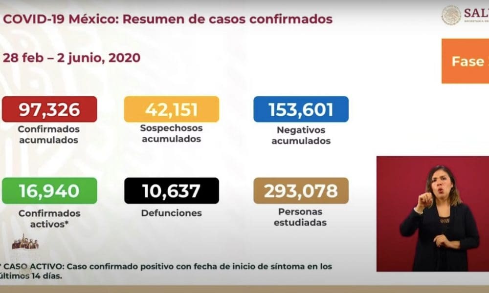 El doctor José Luis Alomía informó que en #México ya se suman 97,326 casos de #coronavirus, mientras que el número de defunciones llegó a los 10,637.
