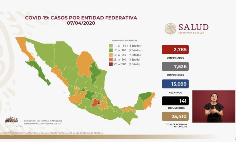 Las autoridades señalan que son 141 los decesos registrados en México por #COVID19. Suman 2, 785 casos confirmados y y más de 7, 500 sospechosos.