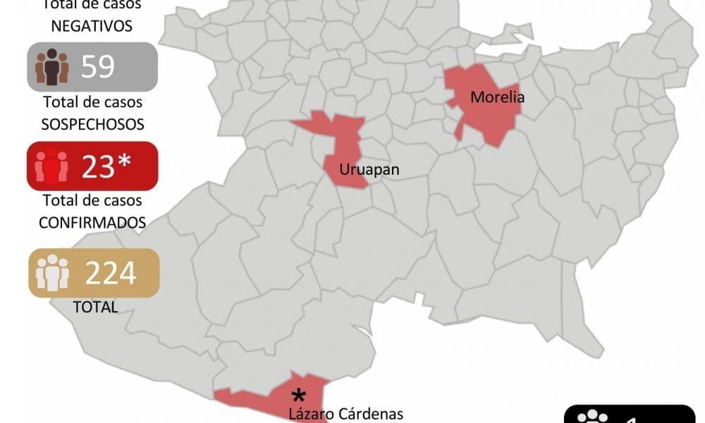 Hasta el momento: 23 casos se han confirmado en el Estado de Michoacán, QUINCE en Morelia, DOS Uruapan SEIS en Lázaro Cárdenas.