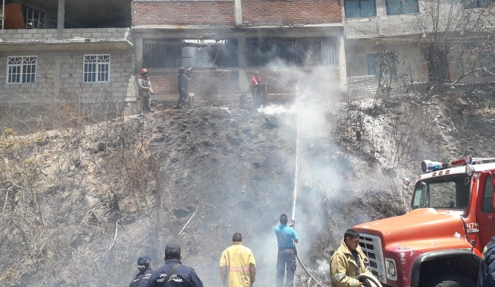Incendios de pastizal afectan metros de baldíos y parte de una vivienda en Zitácuaro