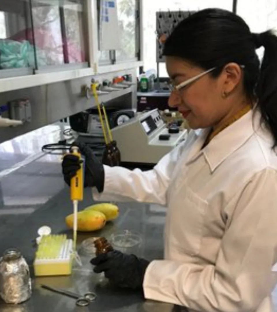 Tanto Leticia como Marco ayudaron a Lesslie a dilucidar los compuestos fenóliticos y propiedades de la cáscara de mango Ataulfo pues, primero para obtener el extracto tuvieron que retirar la cáscara del fruto y retiraron la mayor parte de la pulpa para ponerla a secar.“La sometimos a un proceso de maceración con un solvente de polaridad alta para extraerle los compuestos fenólicos y finalmente realizamos diversos procesos de filtración para obtener el extracto crudo”Lesslie Espinosa, investigadora