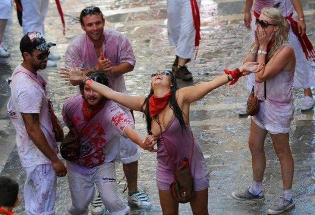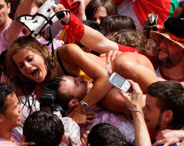Cabe destacar que desde hace algunos años, en el momento del ‘chupinazo’ en donde los festejantes se tiran vino, muchas jóvenes espontáneamente hacen topless y en esta fiesta en particular se ha visto que los hombres han pasado del ‘mirar’, al ‘manosear’ en masa.